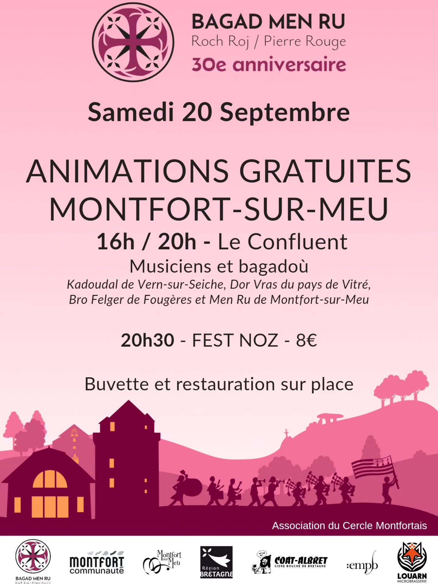 Le Bagad Men Ru est un ensemble musical traditionnel breton basé à Montfort-sur-Meu, à l'ouest de Rennes. Men Ru en breton ou Roch roj en gallo, le bagad a choisi ce nom pour rappeler la pierre rouge typique de notre cité.